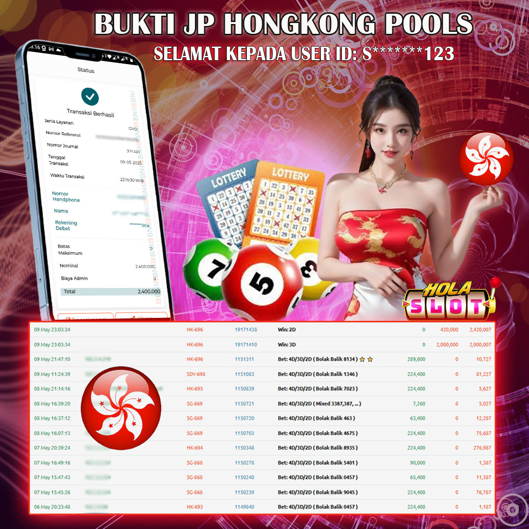 Selamat datang di halaman testimoni kemenangan HOLASLOT, tempat di mana para pemain berbagi kisah nyata tentang keberuntungan mereka! Tidak hanya seru, tetapi setiap putaran di HOLASLOT bisa menjadi awal dari kemenangan besar Anda. Selain itu, beragam bonus dan jackpot fantastis siap menanti Anda setiap harinya. Karena itu, jangan ragu untuk mencoba peruntungan Anda bersama ribuan pemain lainnya yang sudah lebih dulu merasakan sensasi menang. Yuk, mainkan slot favoritmu sekarang dan buktikan sendiri mengapa HOLASLOT menjadi pilihan utama pecinta slot online di Indonesia.