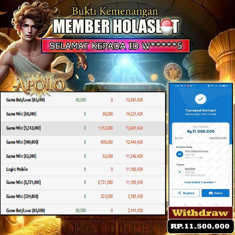 JACKPOT SLOT APOLLO ROY OF LUCK l 28 MEI 2025, Jackpot Slot Gacor, Kemenangan Slot, Bukti Kemenangan Slot, Kemenangan Slot Pragmatic Play, Menang Slot online, Slot Gacor, Situs Aman Terpercaya, WD Berapapun Pasti DI Bayar Tuntas, Maxwin Slot Online.