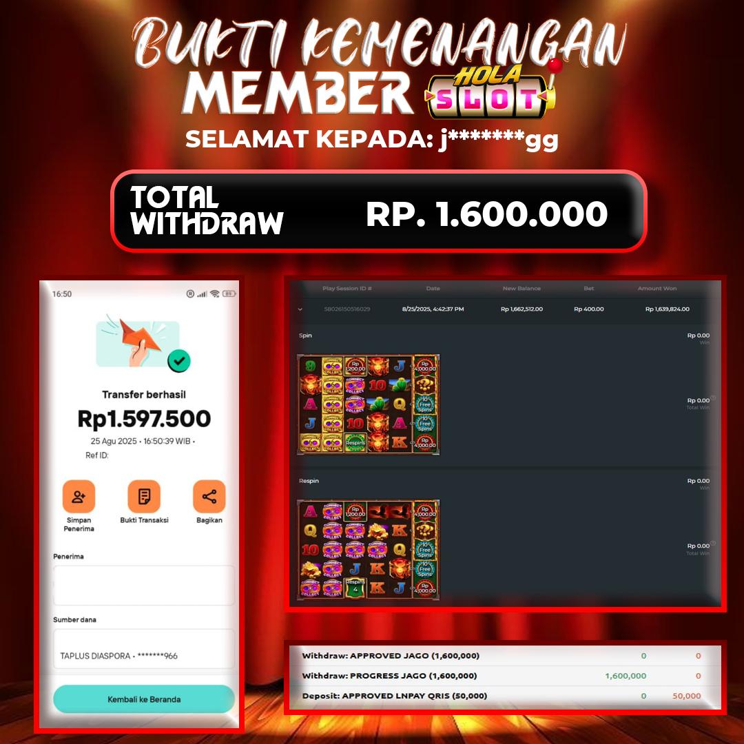 Selama bermain di HOLASLOT, banyak pemain telah meraih kemenangan besar yang dibagikan melalui halaman testimoni kami. Oleh karena itu, testimoni ini menjadi bukti nyata bahwa peluang menang sangat terbuka bagi siapa saja. Selanjutnya, dengan banyaknya promo menarik yang tersedia setiap hari, para pemain memiliki kesempatan lebih besar untuk meraih hasil maksimal. Sementara itu, berbagai bonus seperti cashback, free spin, dan turnamen berhadiah terus diluncurkan untuk menambah keseruan. Sebagai kesimpulan, HOLASLOT bukan hanya tempat bermain game online, tapi juga ladang keberuntungan yang layak Anda coba sekarang juga!.