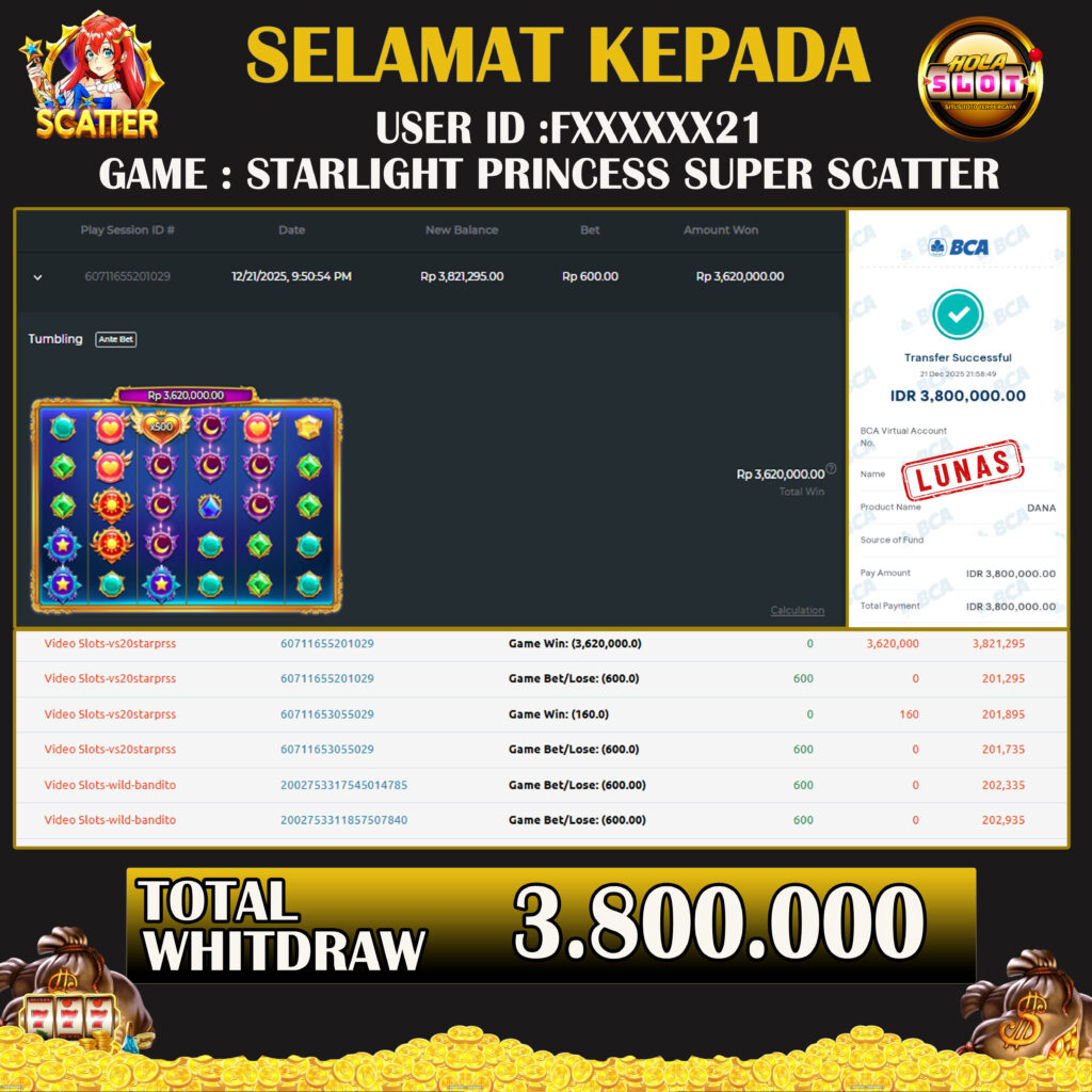 JACKPOT SLOT STARLIGHT PRINCESS SUPER SCATTER 21 DESEMBER 2025, Jackpot Slot Gacor, Kemenangan Slot, Bukti Kemenangan Slot, Kemenangan Slot Pragmatic Play, Menang Slot online, Slot Gacor, Situs Aman Terpercaya, WD Berapapun Pasti DI Bayar Tuntas, Maxwin Slot Online.