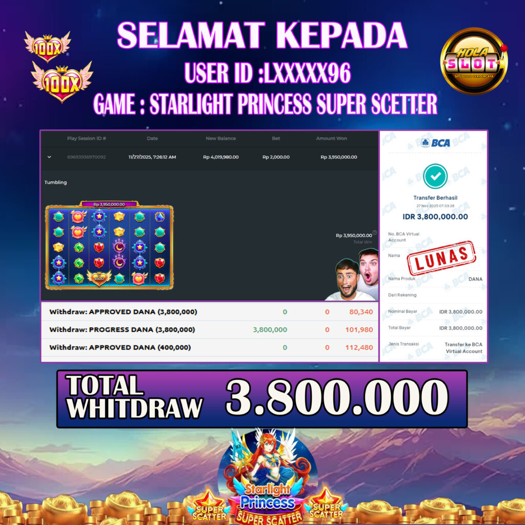 JACKPOT STARLIGHT PRINCESS SUPER SCETTER 27 NOVEMBER 2025, Jackpot Slot Gacor, Kemenangan Slot, Bukti Kemenangan Slot, Kemenangan Slot Pragmatic Play, Menang Slot online, Slot Gacor, Situs Aman Terpercaya, WD Berapapun Pasti DI Bayar Tuntas, Maxwin Slot Online.